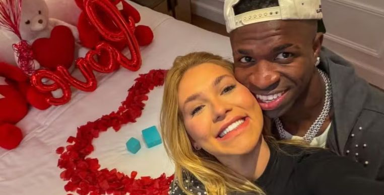 A legenda escolhida pelo atacante do Real Madrid, “V<3V”, faz referência às iniciais dos nomes dos dois. As fotos mostram o casal abraçado e trocando beijos. Em menos de 30 minutos, a publicação ultrapassou 3 milhões de curtidas na rede social, tornando-se um dos assuntos mais comentados do dia.