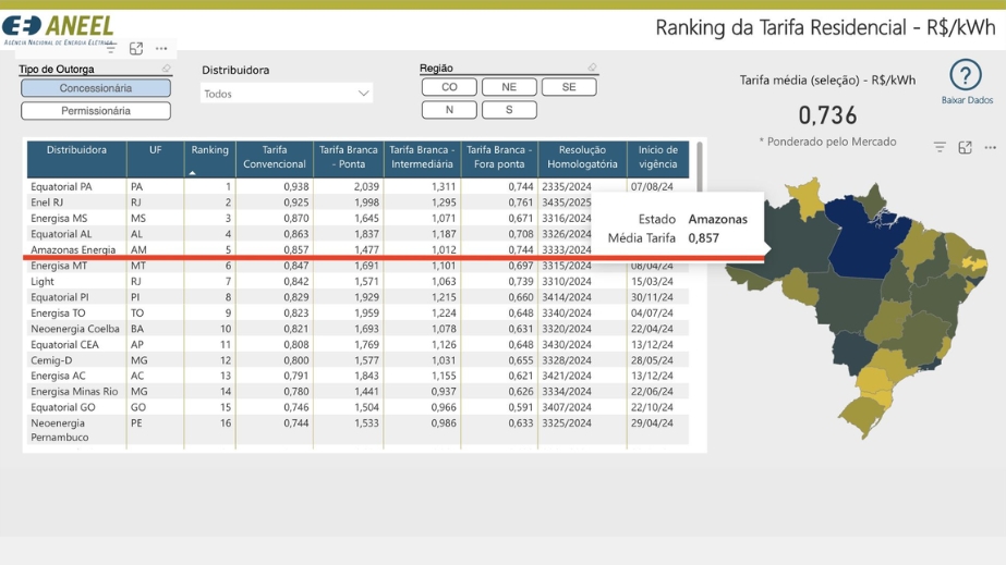 O Amazonas enfrenta uma crise no setor elétrico, com três apagões em menos de um mês e a 5ª tarifa de energia mais cara do Brasil, fixada em R$ 0,857/kWh, segundo o ranking de 2024 da Agência Nacional de Energia Elétrica (Aneel). O último blecaute ocorreu na quarta-feira (02), por volta das 22h, afetando municípios como Itacoatiara, Parintins, Presidente Figueiredo, Iranduba e Manacapuru.