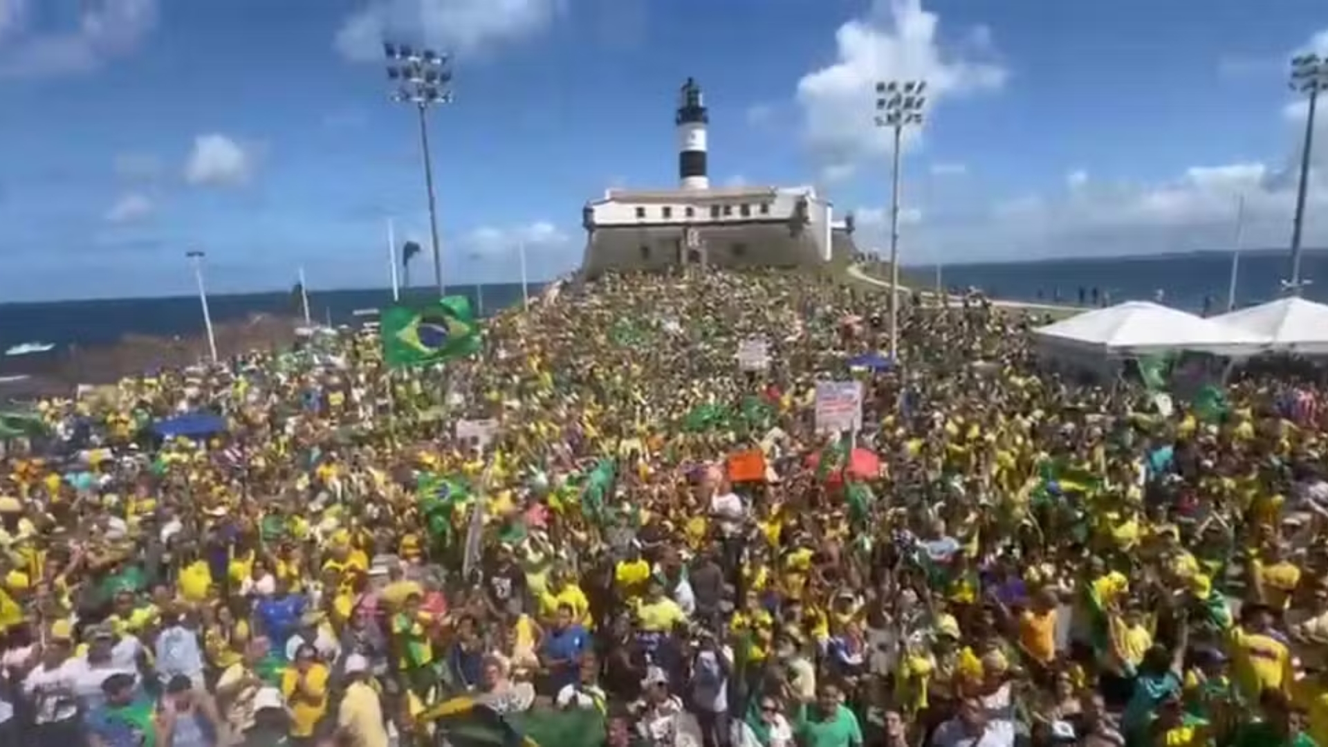Em Salvador, a concentração foi no Farol da Barra. O grupo utilizou um trio elétrico para fazer discursos e cantar o hino nacional. Cartazes exaltando Trump e pedidos de intervenção militar foram vistos entre os manifestantes. Deputados do Partido Liberal (PL) da Bahia marcaram presença, reforçando o viés político do evento.