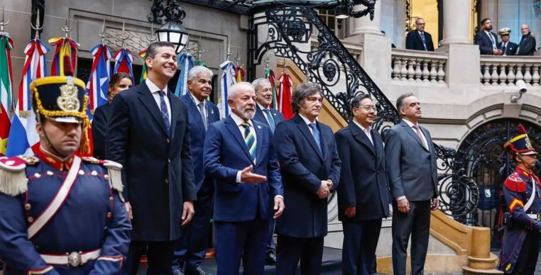 Durante o encontro, Lula recebeu a coordenação do bloco sul-americano do presidente argentino, Javier Milei. Além de Brasil e Argentina, participam da cúpula os representantes de Paraguai, Uruguai, Bolívia, que está em processo de adesão, e países associados.
