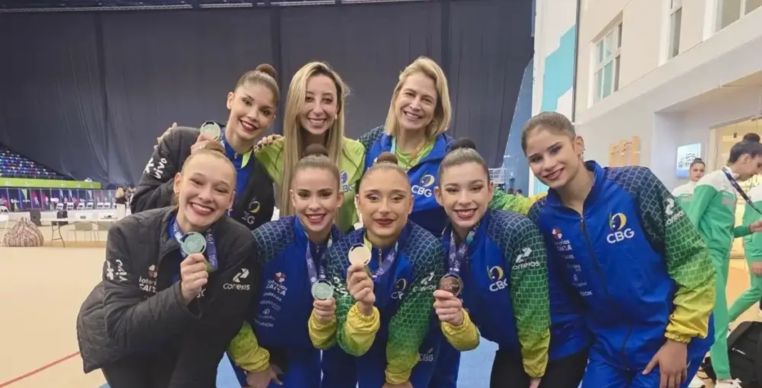 Conjunto de ginástica rítmica garante segunda medalha em duas semanas na competição.