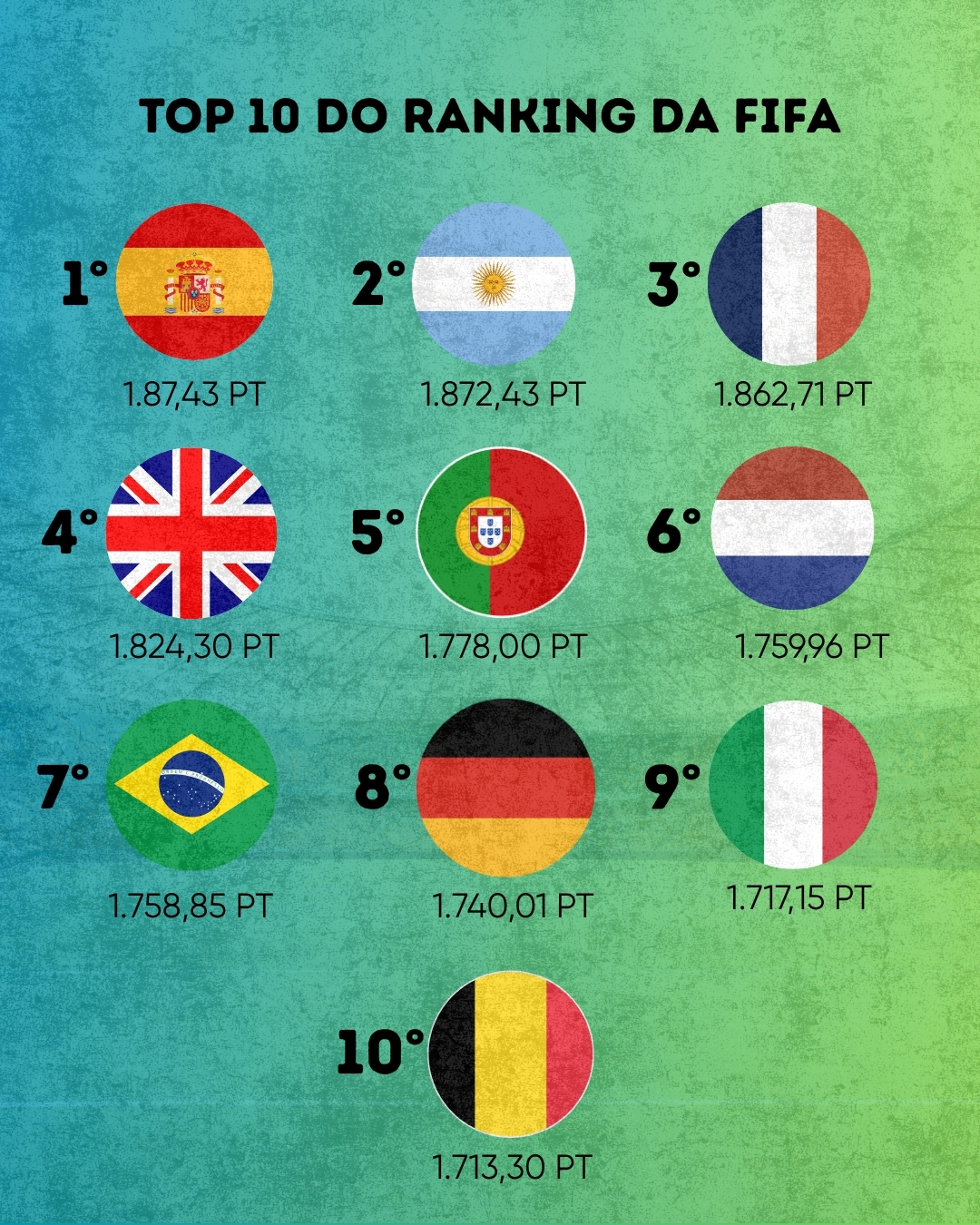 Confira o ranking da FIFA abaixo: