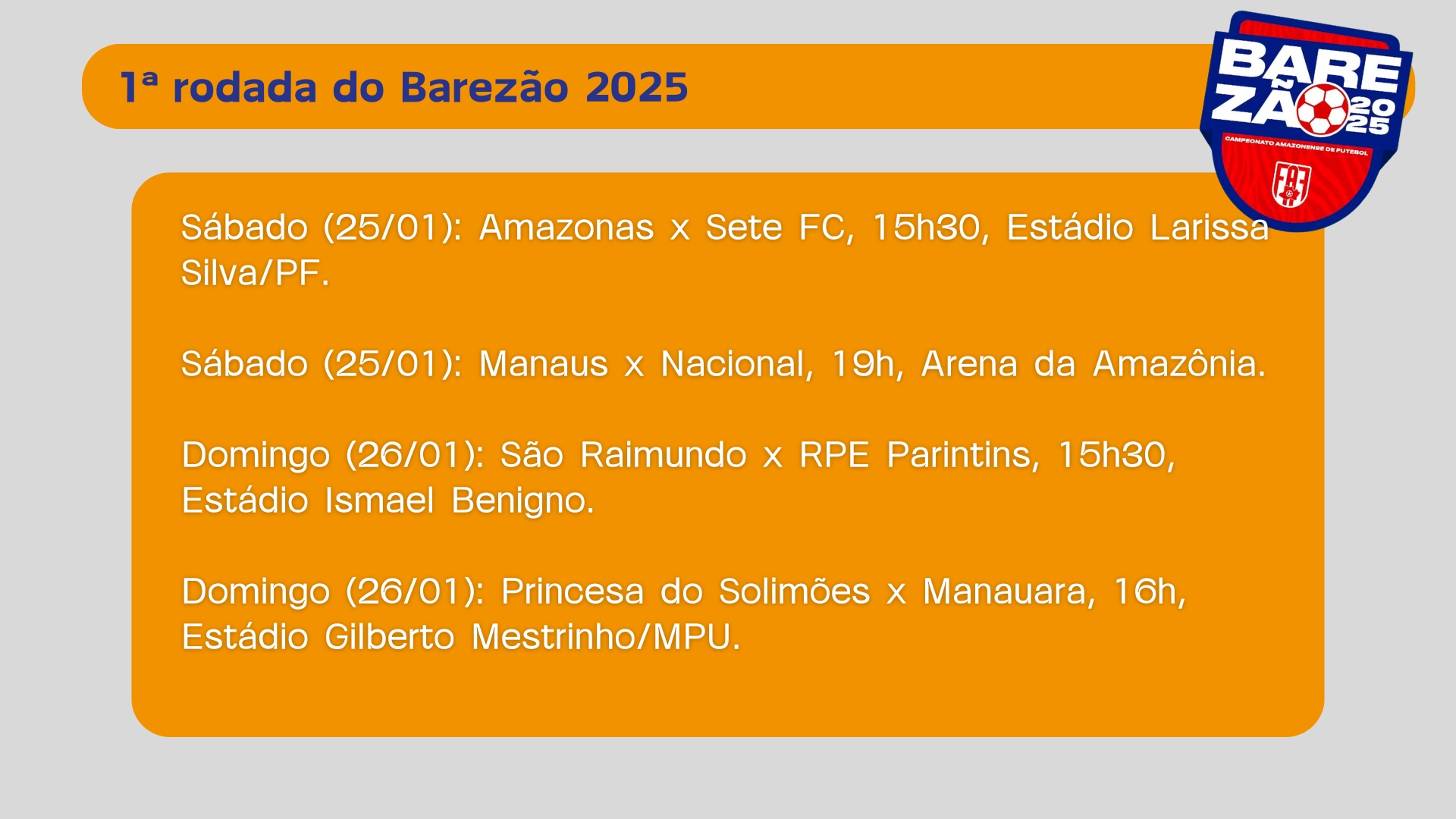 A 109ª edição do Campeonato Amazonense está prestes a começar, com os oito clubes intensificando os preparativos para a estreia neste fim de semana. A abertura será no sábado (25/01), com o Manaus enfrentando Nacional na Arena da Amazônia, enquanto Amazonas e Sete duelam no estádio Larissa Silva. No domingo (26/01), a Princesa do Solimões enfrenta o Manauara no estádio Gilberto Mestrinho, e o São Raimundo recebe o RPE Parintins no estádio Ismael Benigno, a Colina.