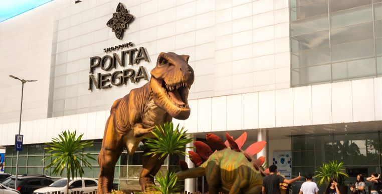A exposição Mundo Jurássico permanece em cartaz no Shopping Ponta Negra até o dia 1º de março, com entrada gratuita. A mostra reúne mais de dez réplicas de dinossauros em tamanho real, com sons e movimentos, incluindo espécies como Tiranossauro rex, Tricerátops, Espinossauro e Estegossauro. O espaço também conta com atrações interativas, realidade virtual, ambiente instagramável e quiosque com venda de souvenires temáticos.
