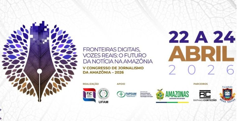 O 5º Congresso de Jornalismo da Amazônia (CONJor) 2026 será realizado entre os dias 22 e 24 de abril, na Faculdade de Informação e Comunicação (FIC) da Universidade Federal do Amazonas (Ufam), em Manaus. Com o tema “Fronteiras digitais, vozes reais: o futuro da notícia na Amazônia”, o evento conta com apoio do Governo do Amazonas, por meio da Fundação de Amparo à Pesquisa do Estado do Amazonas (Fapeam), e busca fortalecer o ensino, a pesquisa e a inovação na área do jornalismo na região.