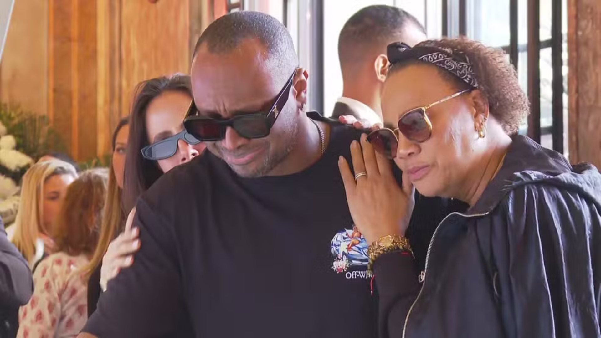 Francisco Gil acaricia a mãe, Preta Gil, durante o velório