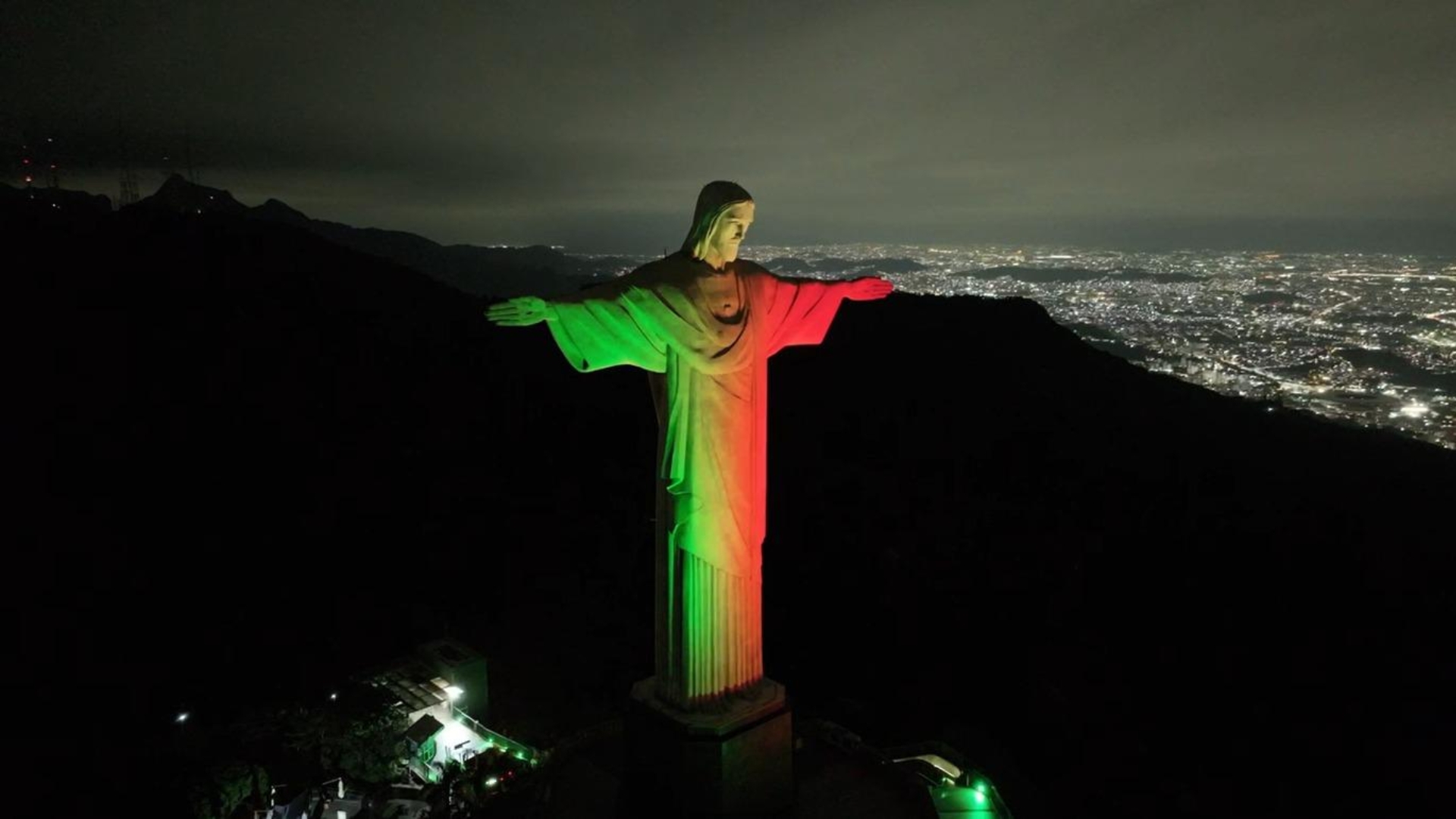 Cristo Redentro nas cores da bandeira da Itália simbolizando a irmandade entre os dois países (Foto: Divulgação)