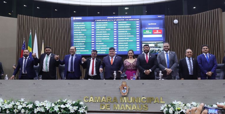 O vereador David Reis (Avante) foi eleito presidente da Câmara Municipal de Manaus (CMM) nesta quarta-feira (1º), com 35 votos a favor entre os 41 vereadores empossados para a 19ª legislatura. Com essa vitória, Reis ocupará o cargo até o final de 2026. Ele foi o candidato da base governista e derrotou o opositor Rodrigo Guedes (PP), que recebeu apenas cinco votos. Houve um voto em branco.