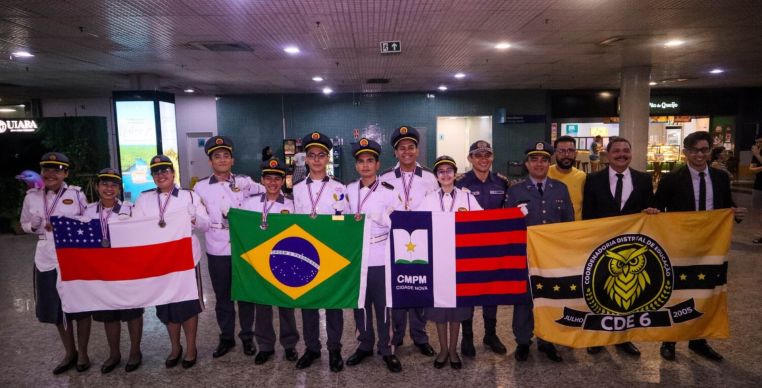 Alunos da Colégio Militar da Polícia Militar II (CMPM 2) retornaram a Manaus na madrugada desta segunda-feira (9) após conquistarem medalhas no International Talent Mathematics Contest, realizado em Bangkok, na Tailândia. Os estudantes foram recebidos com emoção por familiares, professores e autoridades no Aeroporto Internacional Eduardo Gomes.