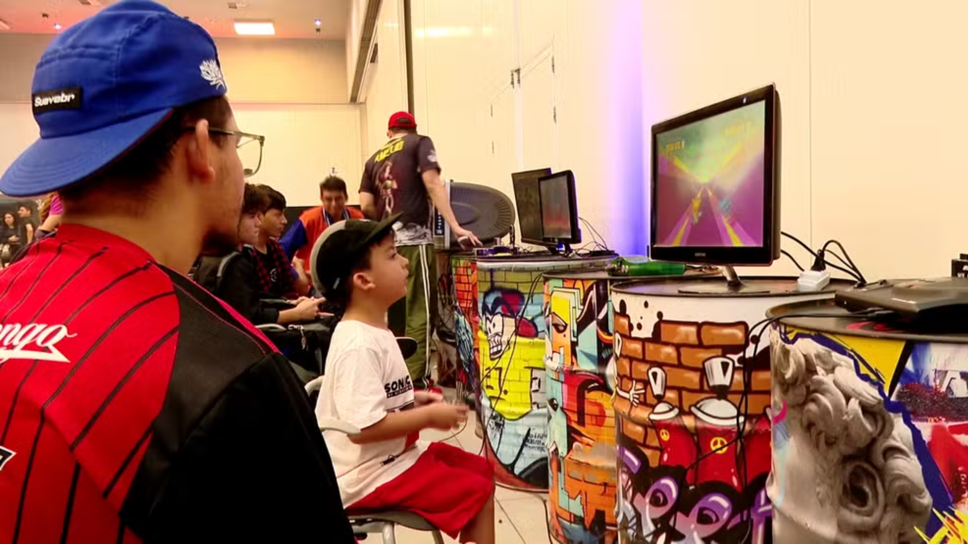 “Os pais que trazem seus filhos pra brincar, a geração de 80 e 90, a gente resgata um pouco dessa cultura que muito desse público não está mais acostumado a jogar. A diversão é pra todo mundo aqui”, afirmou Amélio Belchior, organizador da área retrô.