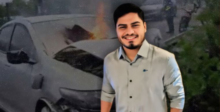 Vídeos compartilhados em aplicativos de mensagens mostram o automóvel pegando fogo logo após o impacto da colisão. As imagens registram as chamas tomando o veículo e chamaram atenção pela intensidade do incêndio no local.