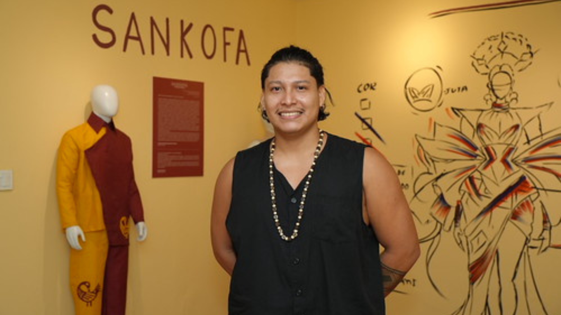 A curadoria reforça o diálogo entre moda e artes visuais. Cristóvão Coutinho explicou que o processo de montagem buscou traduzir essa relação de forma sensível e simbólica. “A intenção foi partir das artes visuais, priorizando o desenho dos croquis nas paredes, que aproximam o público dessa linguagem, e ao mesmo tempo mostrar algumas peças elaboradas pelo estilista, revelando o pertencimento afro e a ancestralidade presentes em cada criação”, detalhou.