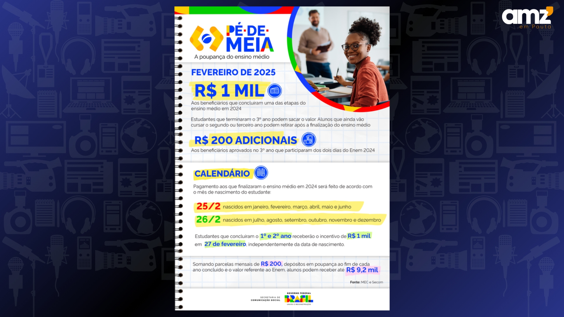 O Governo Federal começa a pagar nesta terça-feira (25/2) a parcela de R$ 1.000 aos alunos participantes do Pé-de-Meia que passaram de ano em 2024. Também serão depositados R$ 200 aos que finalizaram o 3º ano e participaram dos dois dias do Exame Nacional do Ensino Médio (Enem).