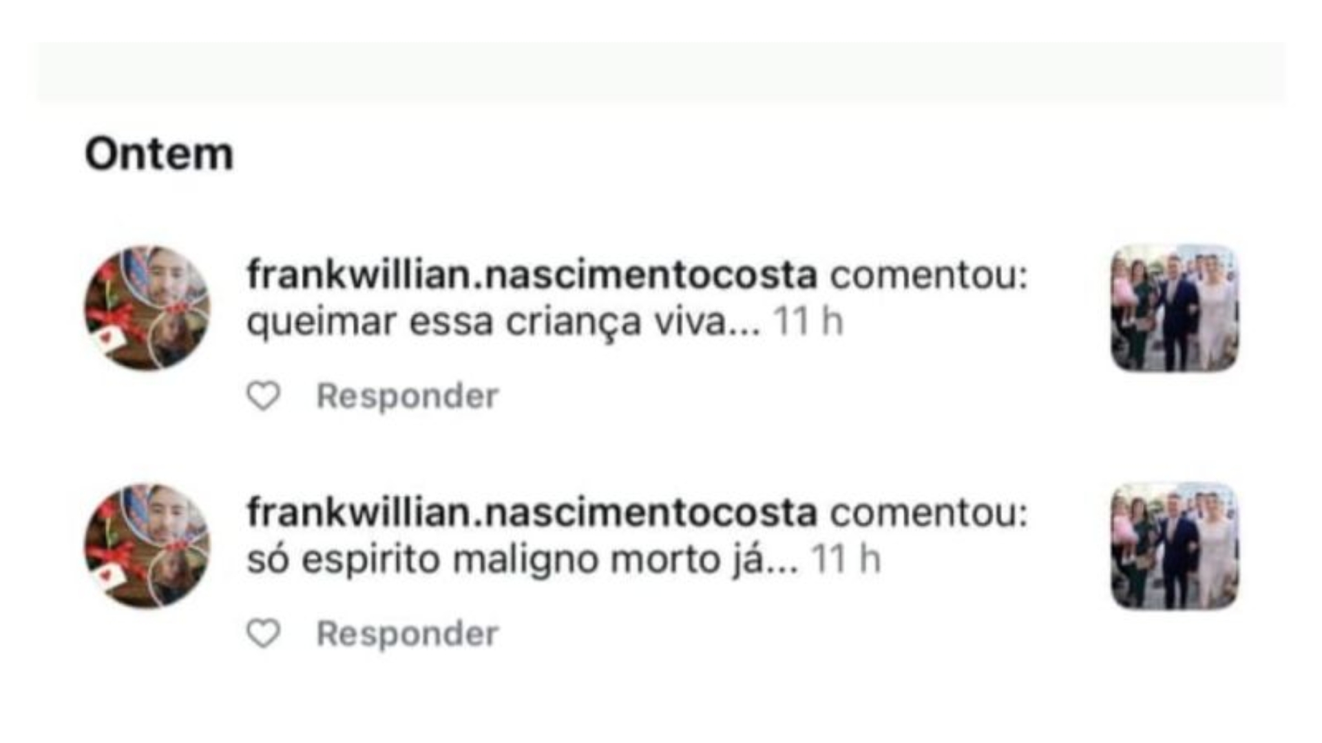 Segundo as autoridades, a ameaça foi registrada na semana passada, após uma publicação nas redes sociais em que o prefeito aparecia com sua filha, Fernanda Aryel, e a neta no colo. No vídeo, o perfil @frankwillian.nascimentocosta comentou: “Queimar essa criança viva”, o que provocou forte repercussão e levou à abertura imediata de uma investigação.