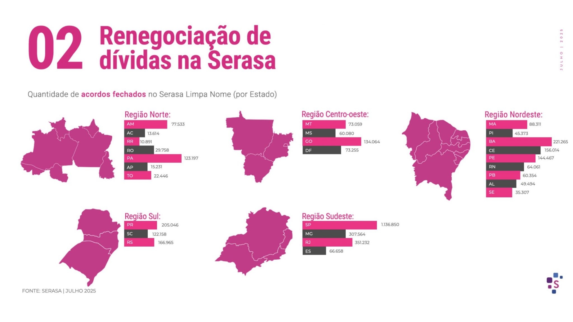 Em julho, o valor médio de cada acordo firmado na plataforma de renegociação da Serasa foi de R$ 736. No total, os acordos somaram mais de R$ 11,1 bilhões. Mesmo com esse volume, ainda restam 623 milhões de ofertas disponíveis para negociação, que juntas superam R$ 973 bilhões, demonstrando o tamanho do passivo financeiro no País.