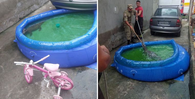 Um jacaré foi encontrado dentro de uma piscina de plástico no quintal de uma residência, no bairro São José, em Manaus, na manhã do domingo (29). O Corpo de Bombeiros Militar do Amazonas foi acionado e realizou o resgate do animal, que foi devolvido ao habitat natural.