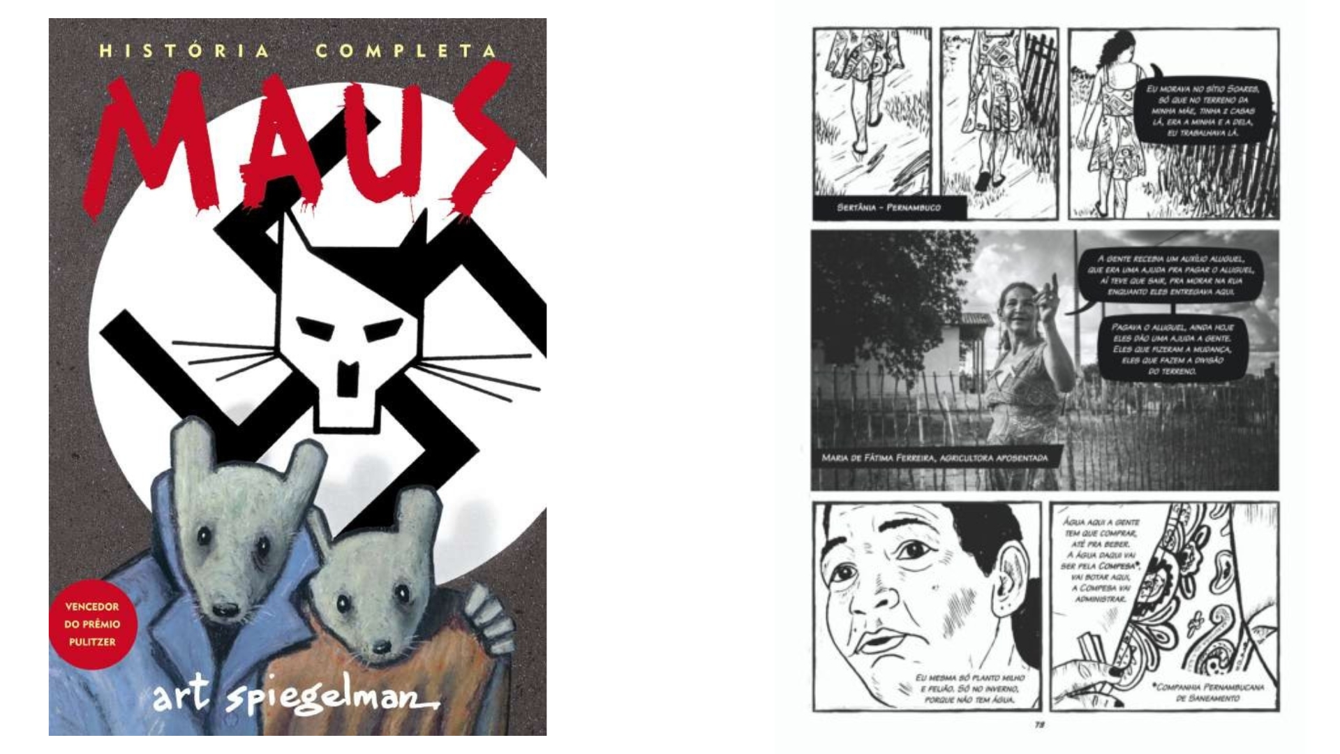 “Mauz”, de Art Spiegelman se baseia nas entrevistas que o autor fez com o próprio pai, sobrevivente de um campo de concentração dos nazistas. Ele conta a experiência do pai com um traço cartunesco, desenhando os judeus como ratos brancos e os nazistas como gatos. O trabalho foi o primeiro quadrinho a ganhar um Pulitzer, o prêmio máximo do jornalismo e literatura dos Estados Unidos.