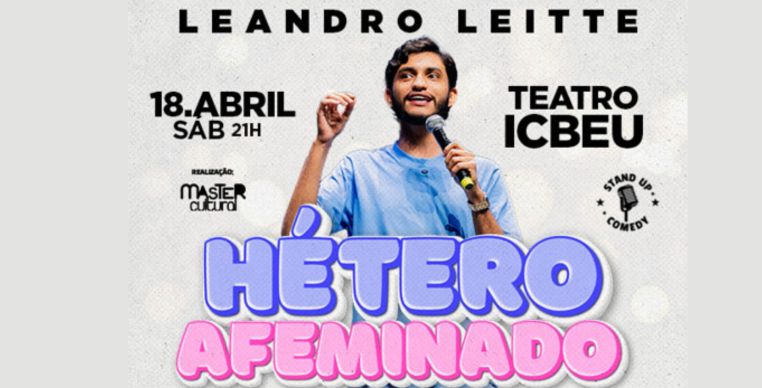 O humorista Leandro Leitte se apresenta em Manaus no dia 18 de abril com o show “Hétero Afeminado”, no Teatro ICBEU, no Centro da capital.