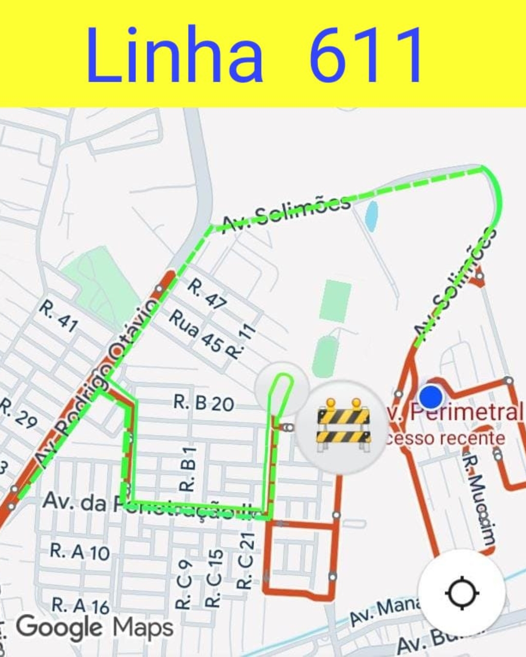 A Prefeitura de Manaus informou, por meio do Instituto Municipal de Mobilidade Urbana (IMMU), que a linha de ônibus 611 terá alterações temporárias em seu itinerário entre os dias 19 e 21 de setembro, das 7h às 18h. A mudança ocorre em razão de obras realizadas pela concessionária Águas de Manaus, que executa a ampliação da rede de esgoto nas ruas Waldomiro Lustoza e D16.