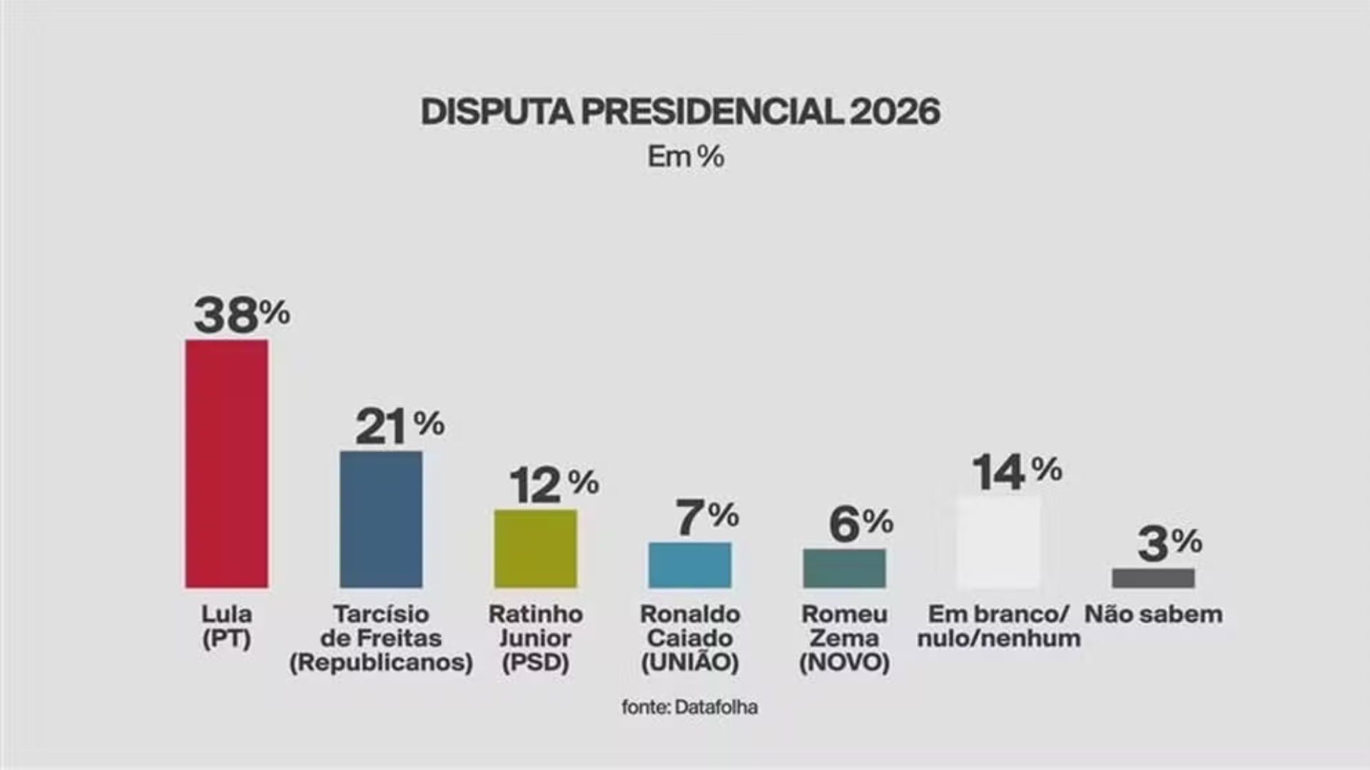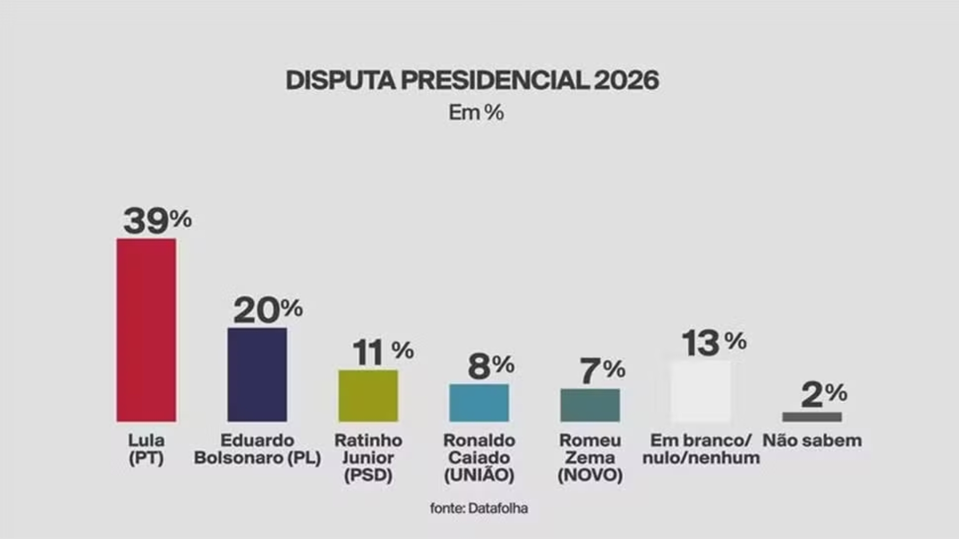 A mais recente pesquisa do Instituto Datafolha, divulgada no último sábado (2) pelo jornal Folha de S.Paulo, aponta que o presidente Luiz Inácio Lula da Silva (PT) lidera isoladamente em todos os cenários de primeiro turno das eleições presidenciais de 2026. Além disso, o levantamento mostra que Lula ampliou sua vantagem nas simulações de segundo turno, superando seus principais adversários com folga que ultrapassa o limite da margem de erro, o que indica um movimento de recuperação do petista na corrida pela reeleição.