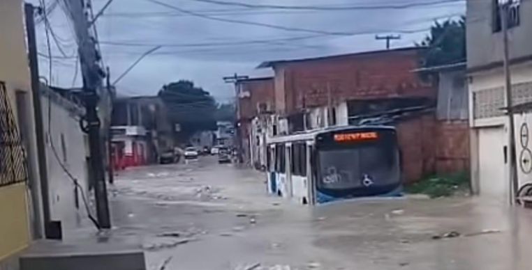 No vídeo, o ônibus segue o percurso mesmo diante das dificuldades, enquanto a água se movimenta ao redor do veículo, dando a impressão de que ele navega por um igarapé urbano. A situação chamou atenção pela gravidade do alagamento e pelo risco enfrentado por passageiros e motorista.