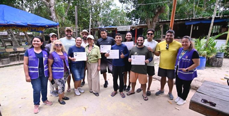 A iniciativa, que capacitou cerca de 300 jovens e adultos de comunidades com potencial turístico, totalizou 270 horas de formação divididas em três etapas: no bairro Colônia Antônio Aleixo, no centro histórico de Manaus e na própria RDS do Tupé.