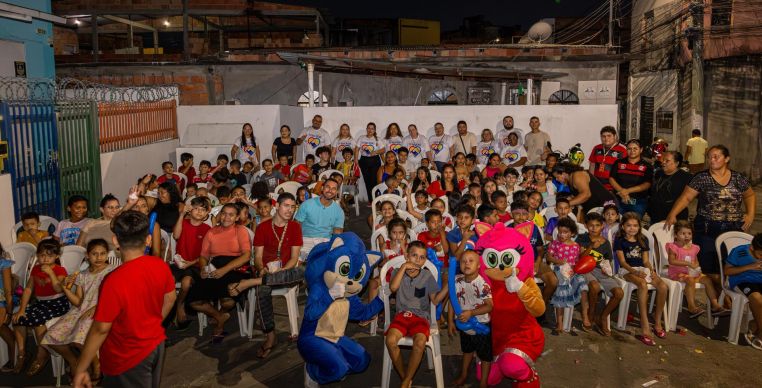 A programação contou com exibição gratuita de filme, brincadeiras, pintura facial, distribuição de pipoca, refrigerante e brindes, e foi bem recebida pelos moradores da comunidade.