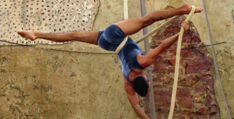 O espetáculo de circo contemporâneo explora a relação do corpo com o espaço, incorporando equilíbrios, contorções, manipulação de objetos e acrobacias, tanto de solo quanto aéreas, em formato de espetáculo de rua.