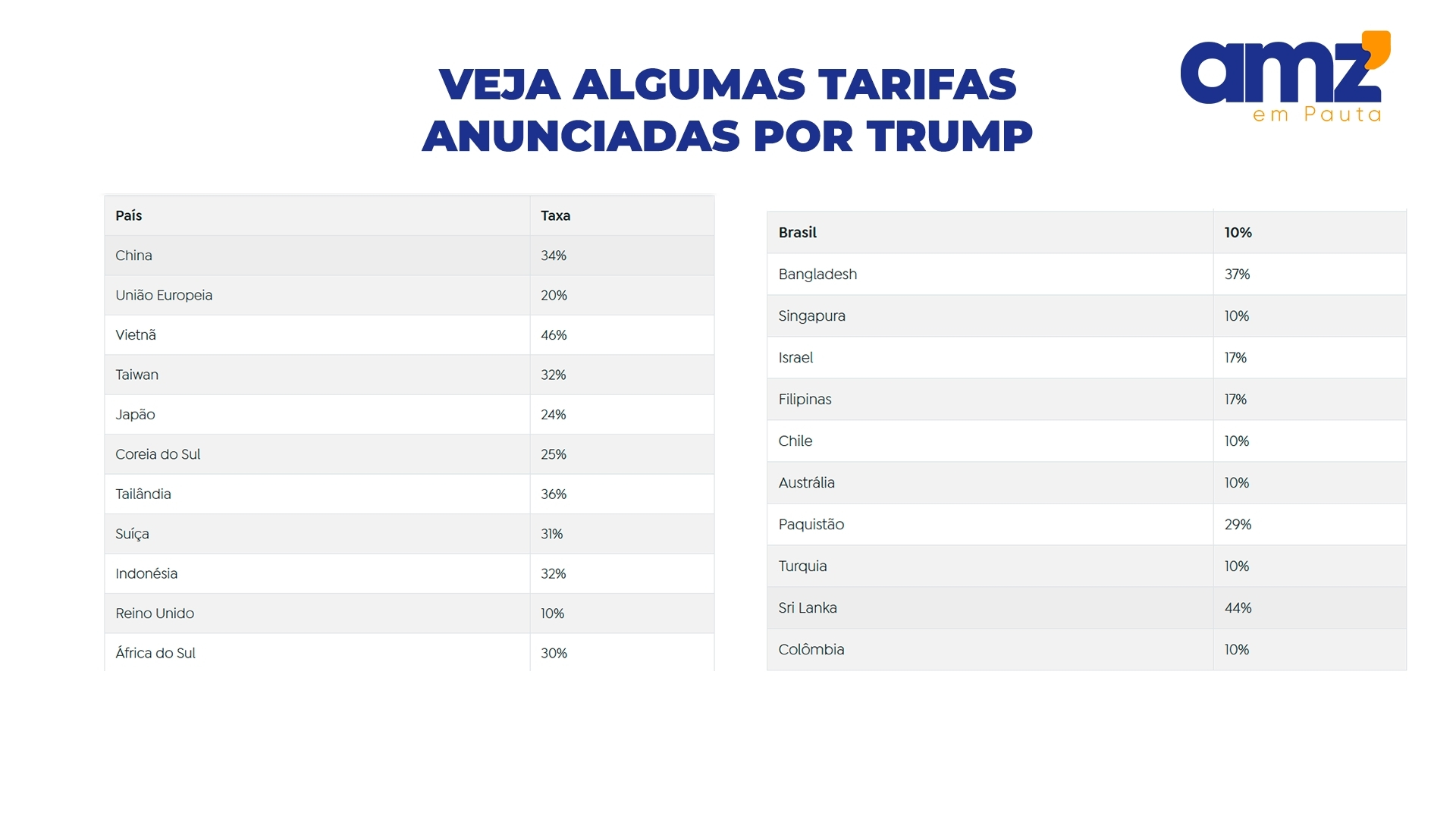 O presidente dos Estados Unidos, Donald Trump, anunciou nesta quarta-feira (2) a implementação de um "tarifaço" global sobre impostos de importação, que afeta uma série de países, incluindo o Brasil. Durante um evento denominado pelo republicano como o "Dia de Libertação", Trump revelou que os produtos brasileiros passarão a ter uma tarifa de 10% sobre o valor das importações.