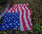 Bolsonaristas erguem bandeira dos EUA no Dia da Independência do Brasil