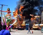 Incêndio atinge alegoria do Caprichoso e mobiliza união entre os bois