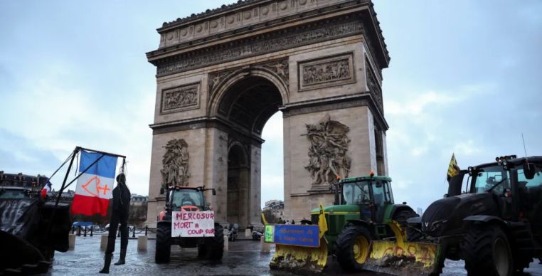 A mobilização ocorre um dia antes da votação do acordo comercial pelos Estados-membros da UE e aumenta a pressão sobre o presidente francês, Emmanuel Macron, cujo governo não possui maioria no parlamento. Qualquer revés político pode resultar em um voto de desconfiança.