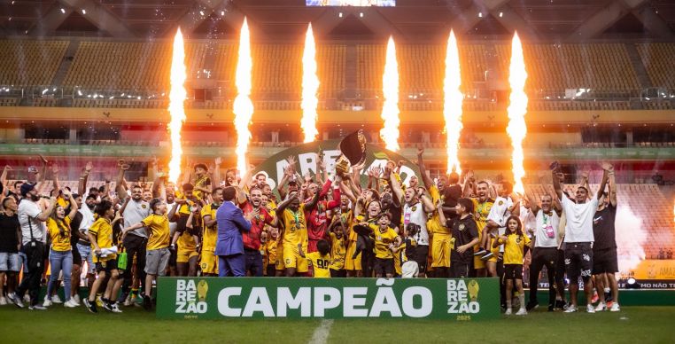 O Amazonas é o campeão do Campeonato Amazonense 2025. A Onça-pintada superou o Nacional por 2 a 1 na noite desta terça-feira (1), na Arena da Amazônia, e conquistou o segundo título estadual de sua história. Rodrigo Varanda e Diego Zabala marcaram os gols da vitória aurinegra, enquanto Vinicius Balotelli descontou para o Leão.