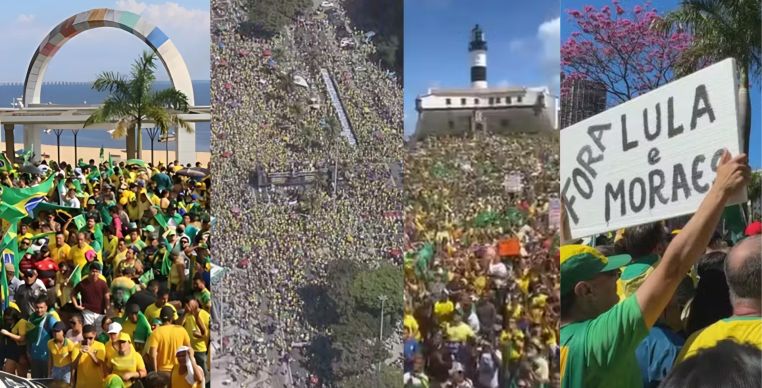 Em Salvador, a concentração foi no Farol da Barra. O grupo utilizou um trio elétrico para fazer discursos e cantar o hino nacional. Cartazes exaltando Trump e pedidos de intervenção militar foram vistos entre os manifestantes. Deputados do Partido Liberal (PL) da Bahia marcaram presença, reforçando o viés político do evento.
