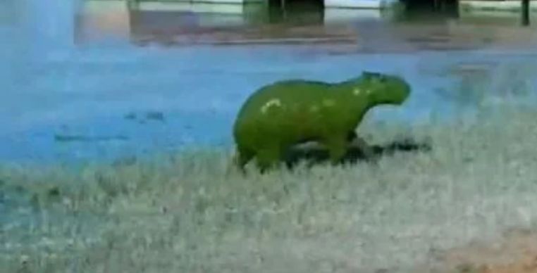 Imagens de capivaras cobertas por um tom verde intenso chamaram atenção no reservatório da represa de Salto Grande, província de Entre Ríos, no centro-sul da Argentina.