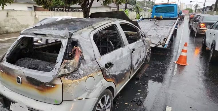 Um carro ficou completamente destruído após pegar fogo, na manhã desta quinta-feira (12), na Avenida São Jorge, localizada no bairro São Jorge, Zona Oeste de Manaus. Apesar da gravidade do incêndio, não houve registro de feridos.