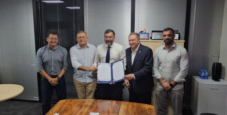 Na manhã desta segunda-feira (9), o prefeito de Codajás, Tonho Santos, participou da assinatura do convênio para a construção da primeira etapa do Balneário Municipal, que será instalado no bairro Bela Vista. A cerimônia aconteceu no Centro Integrado de Comando e Controle (CICC), em Manaus, com a presença do governador Wilson Lima, do deputado federal Átila Lins e de diversas autoridades estaduais e municipais.