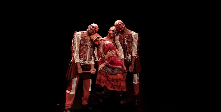 A cena é marcada pelo uso de máscaras, símbolos que remetem a memórias e arquétipos em transformação. Com uma linguagem que une dança, teatro e elementos visuais vibrantes, a obra se desenvolve como uma travessia poética que celebra a pluralidade e a vida em coletividade. “Celebramos a pluralidade como riqueza, revelando que a vida se expande quando se dança junto”, afirma o diretor Fábio Moura.