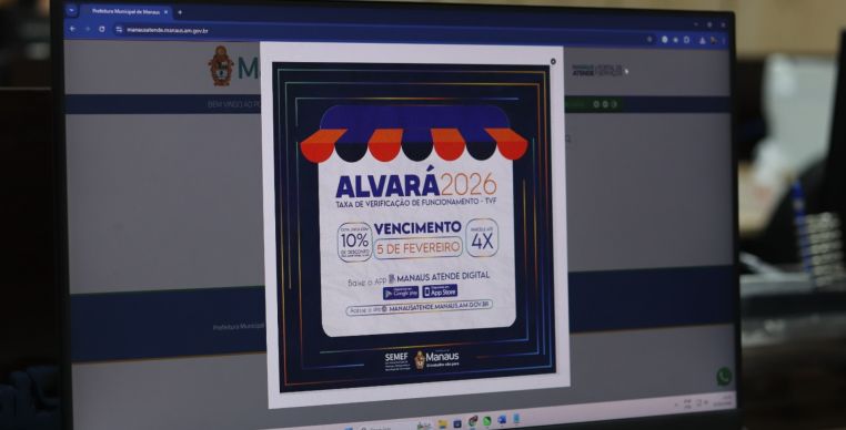 O prazo final para pagamento da Taxa de Verificação de Funcionamento (TVF), conhecida como Alvará 2026, com desconto, vence nesta quinta-feira (5). O alerta foi feito pela Prefeitura de Manaus, por meio da Secretaria Municipal de Finanças, Planejamento e Tecnologia da Informação (Semef). Na data, vencem tanto a cota única quanto a primeira parcela do tributo.