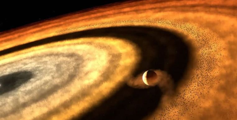 Situado a 880 anos-luz da Terra, Tylos é um gigante gasoso que orbita tão próximo de sua estrela, a Dilmun, que sua atmosfera ferve, com nuvens de metal vaporizado. Agora, cientistas identificaram os blocos de construção que deram origem ao planeta: pequenas pedras e poeira remanescentes do nascimento da estrela.