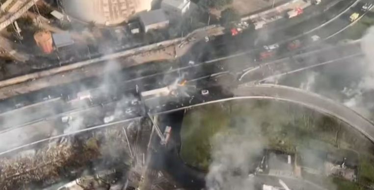 Incidente em rodovia da Região Metropolitana de Santiago deixa 17 feridos; imagens mostram o momento da explosão.