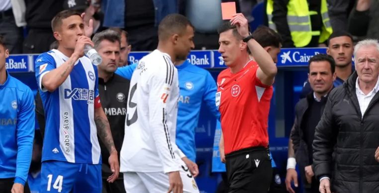 Kylian Mbappé foi expulso na partida entre Real Madrid e Alavés, no último domingo, e pode desfalcar o time merengue na reta final da temporada. O lance violento pode render até três jogos de suspensão ao atacante, o que o deixaria de fora da final da Copa do Rei, contra o Barcelona.