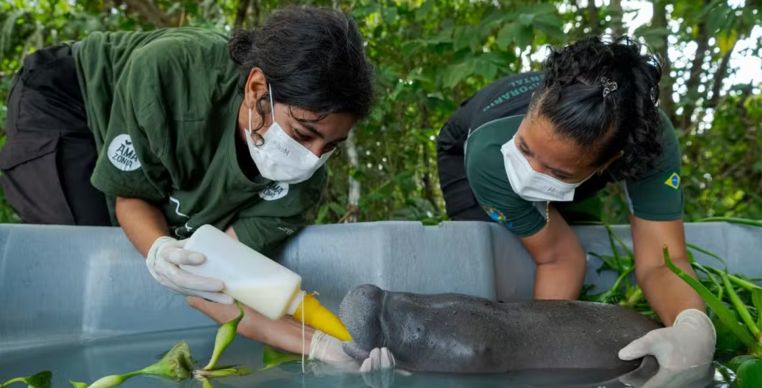 Um filhote de peixe-boi-da-Amazônia (Trichechus inunguis), com cerca de três meses de idade, foi resgatado no município de Alvarães, no interior do Amazonas, após ser encontrado sozinho e debilitado. A ação envolveu o Instituto Mamirauá, o Instituto Chico Mendes de Conservação da Biodiversidade (ICMBio) e a Secretaria Municipal de Meio Ambiente, que agora acompanham o processo de recuperação do animal.