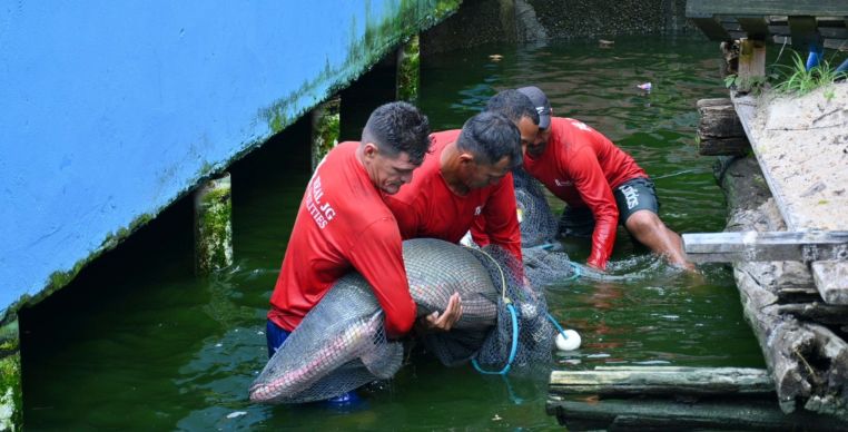 Kleyver Fagundes, coordenador técnico da Fazenda Experimental da Ufam, informou que os animais foram acomodados em dois tanques de 1.700 m², sendo um destinado aos peixes e outro às tartarugas, e que a fazenda possui cerca de dois hectares de lâmina d'água, projetados para garantir o manejo adequado das espécies.