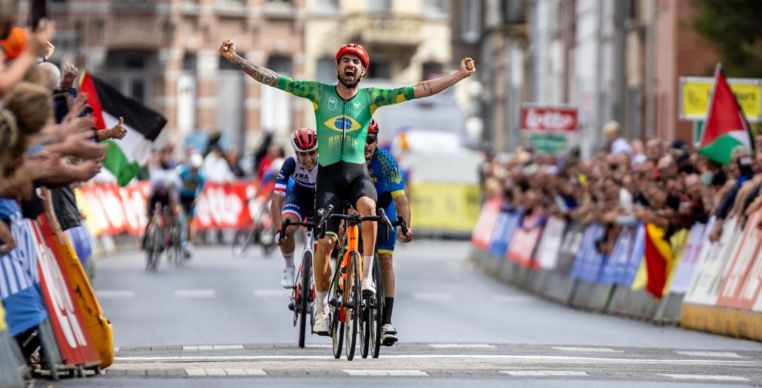 Representando o Brasil, o ciclista de Araraquara (SP) completou os 92,4 quilômetros da prova de estrada em 2h11min29, cruzando a linha de chegada apenas meia bicicleta à frente do ucraniano Yehor Dementyev, campeão olímpico em Paris, que ficou com a prata. O francês Eliott Pierre garantiu a medalha de bronze.