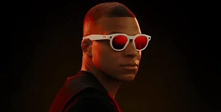 O jogador de futebol Kylian Mbappé em peça publicitária sobre os novos óculos da Oakley em parceria com a Meta.
