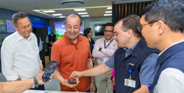 O senador Omar Aziz visitou, na manhã desta segunda-feira (13), a fábrica da Samsung em Manaus, onde foi recebido pelo presidente da empresa na capital amazonense, Daejung Shin. A agenda contou ainda com a presença da deputada estadual Alessandra Campelo, do deputado federal Silas Câmara e do ex-deputado Massami Miki.