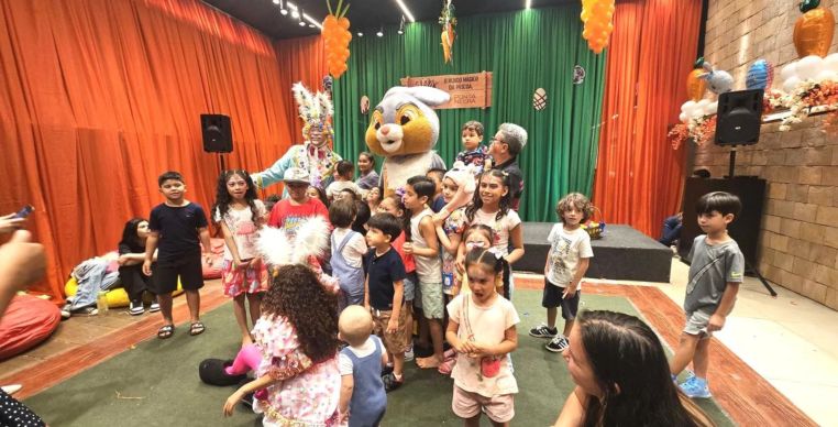 No Manauara Shopping, a programação inclui a “Toca do Coelho”, atividades recreativas e ações solidárias em parceria com o Abrigo Moacyr Alves, além de campanha promocional com sorteio de cestas de chocolate. As atividades seguem até o dia 5 de abril, com foco em entretenimento e engajamento social.