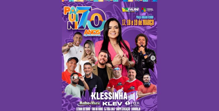O município de Pauini vai celebrar seus 70 anos de história com uma programação especial entre os dias 17 e 19 de março. A festa será realizada na Praça Bibiano Osório e contará com shows musicais e atividades comemorativas para a população.