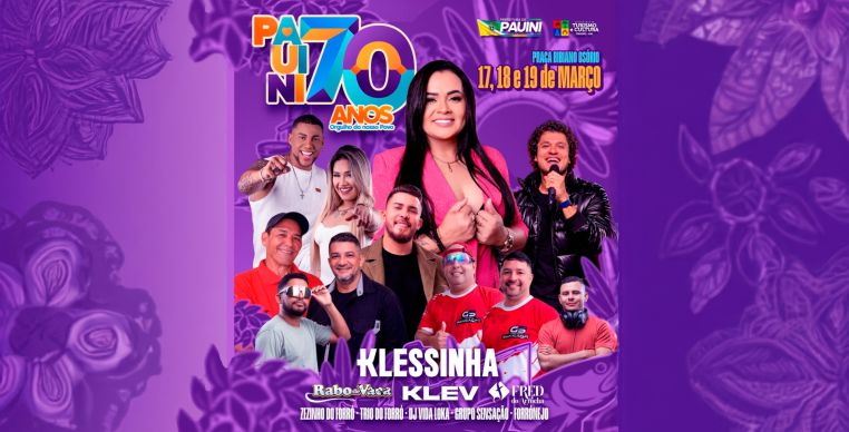 Entre as atrações confirmadas estão nomes como Klessinha, Klev, Fred do Arrocha, Rabo de Vaca, Grupo Sensação, Forronejo, Zezinho do Forró, Trio do Forró e DJ Vida Loka.